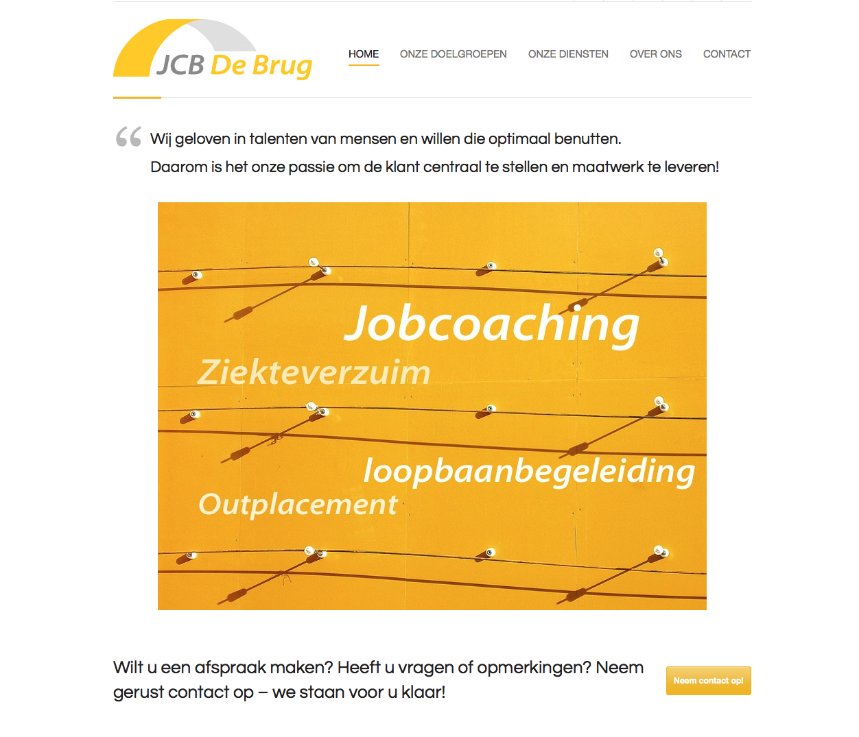 Branding and website for jobcoach agency JCB De Brug. Other PostsKringloop EnschedeA Frame isMorning BashFinanzcheckGentleman’s AgreementMevrouw BrusseEvent AppAjax AppS2MBHV Oranje56AvenueBetty van SpijkerPrescanCafé het BolwerkInloopcentrum voor Werk en Ondernemerschap